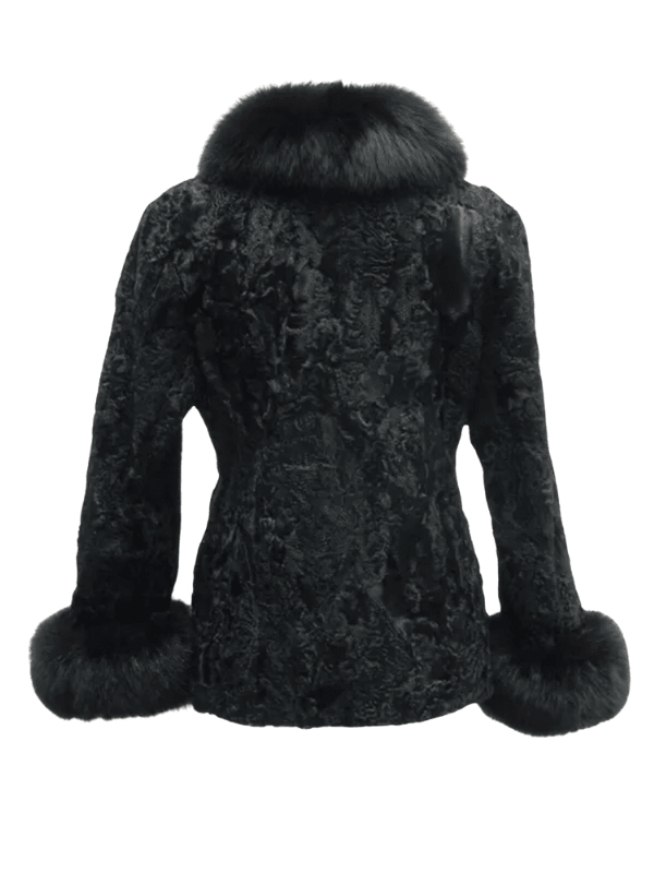Women’s Black Persian Lamb Fur Coat with Fox Fur Collar
