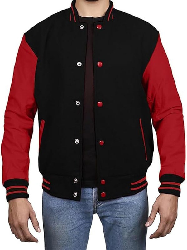 Men’s Black Varsity Jacket With Red Sleeves