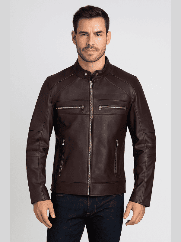 Men’s Brown Cafe Racer Biker Leather Jacket