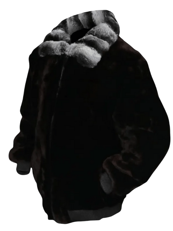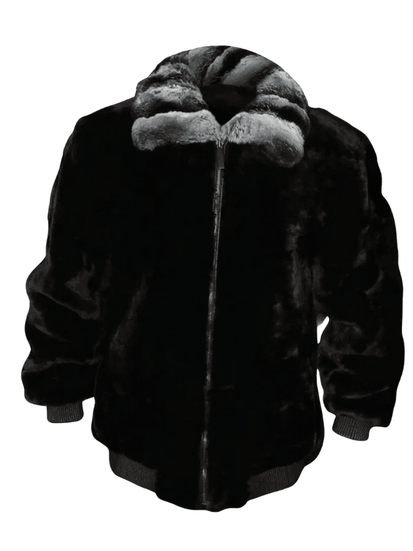 Men’s Mink Fur Bomber Jacket with Chinchilla Collar