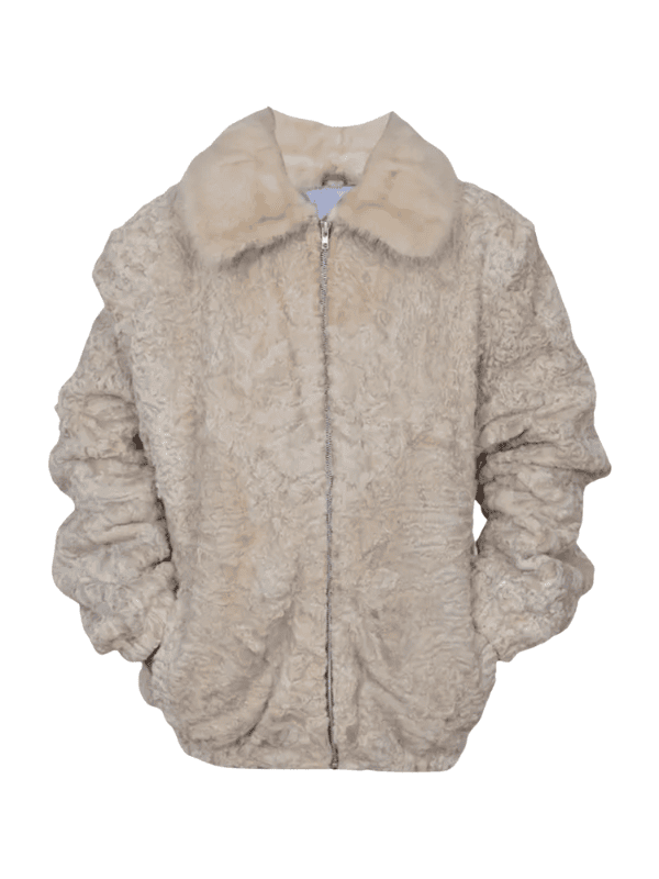 Men’s Off White Persian Lamb Fur Bomber Jacket