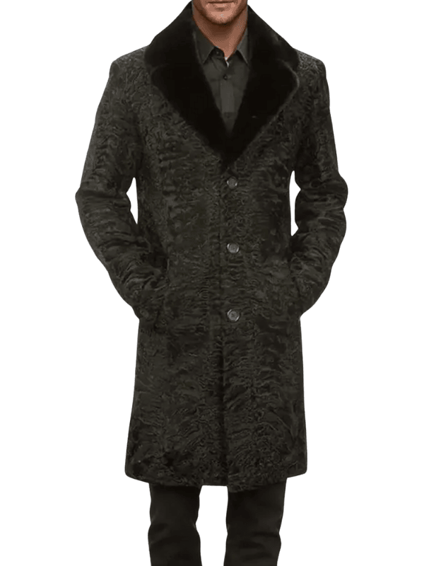 Men’s Persian Lamb Fur Long Coat with Mink Collar