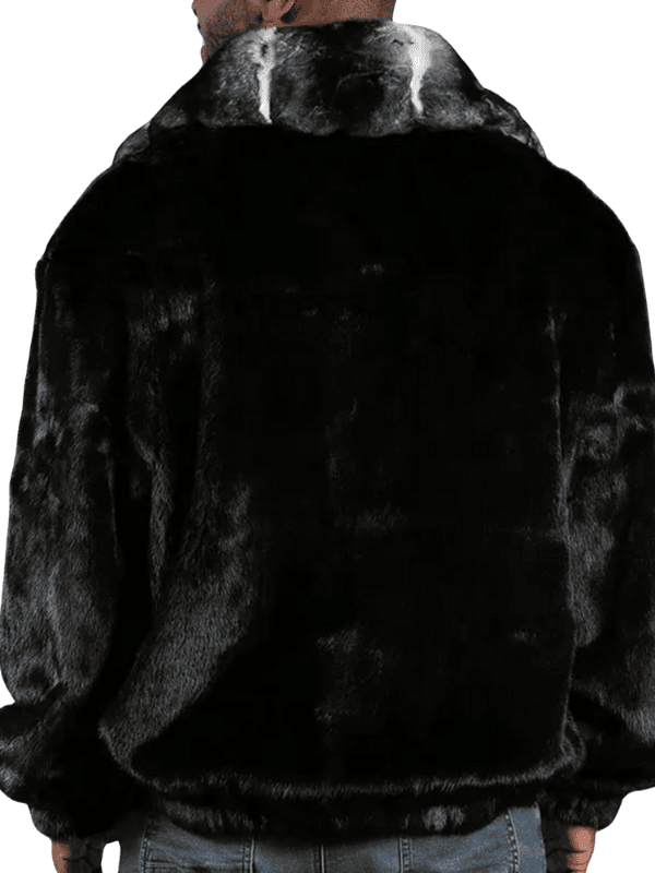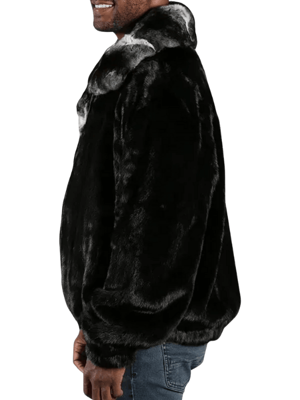 Men’s Black Real Mink Fur Jacket with Chinchilla Fur Collar