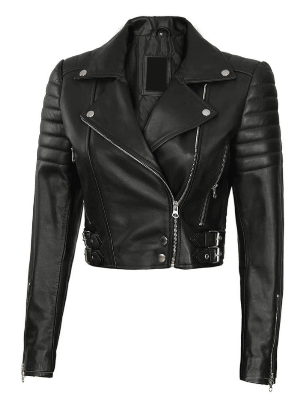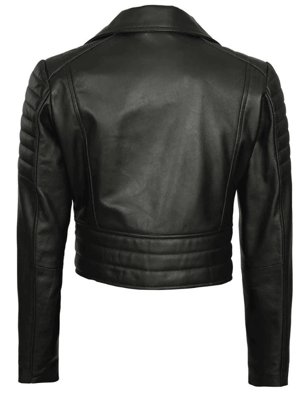 Women’s Black Cropped Leather Moto Jacket