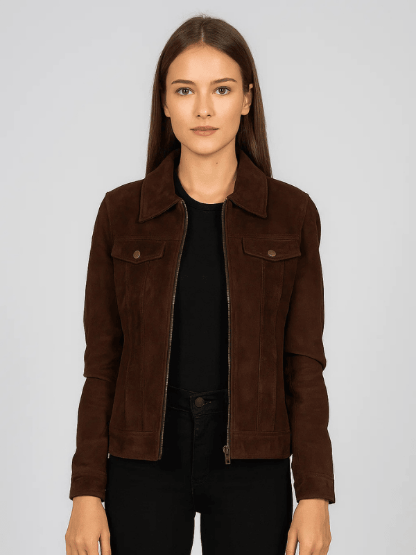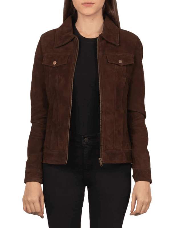 Women’s Brown Oversized Suede Leather Trucker Jacket
