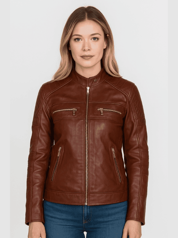 Women’s Brown Cafe Racer Biker Real/Faux Leather Jacket