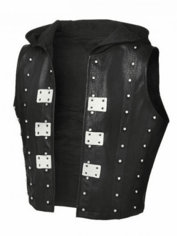 AJ Styles WWE 2K22 Black Leather Hooded Vest